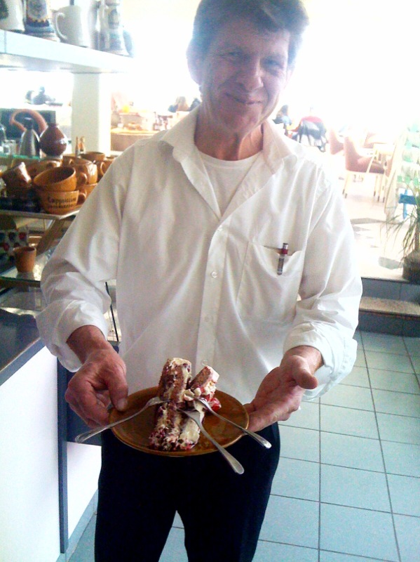Das letzte Stück Schwarzwälder "mußten" sich drei Gäste teilen… Morgen gibt es wieder frische Torte auf dem Berg!