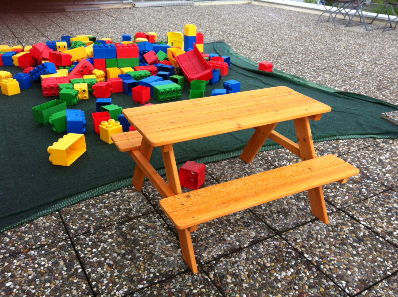 Pünktlich zum Frühsommer gibt es auf unserer neuen Biergartenterrasse perfekte Kinderbänke