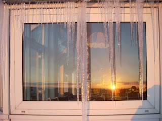 These icicles hanging from the Sommerberg hotel conservatory were photographed a couple of weeks ago at dawn. Some were several meters long but many have since disappeared due to a short warm spell.