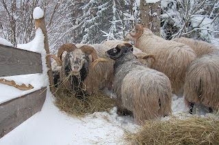 Another foot of snow overnight ensures a record winter for snow since I arrived in 2006. Meanwhile the sheep tuck into their daily breakfast of hay, their only food source when snow covers the hillside.